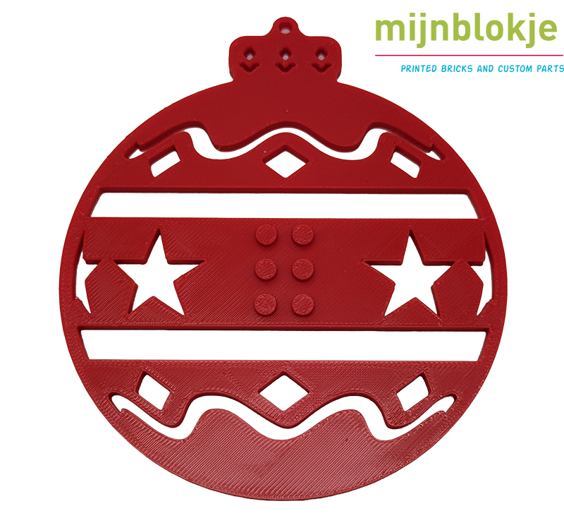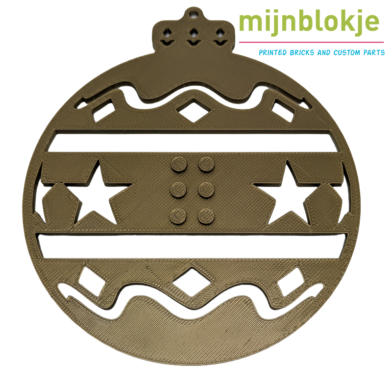 Een 3d geprinte kerstversiering voor in de kerstboom. Er is plaats voorzien om een minifig op te plaatsen